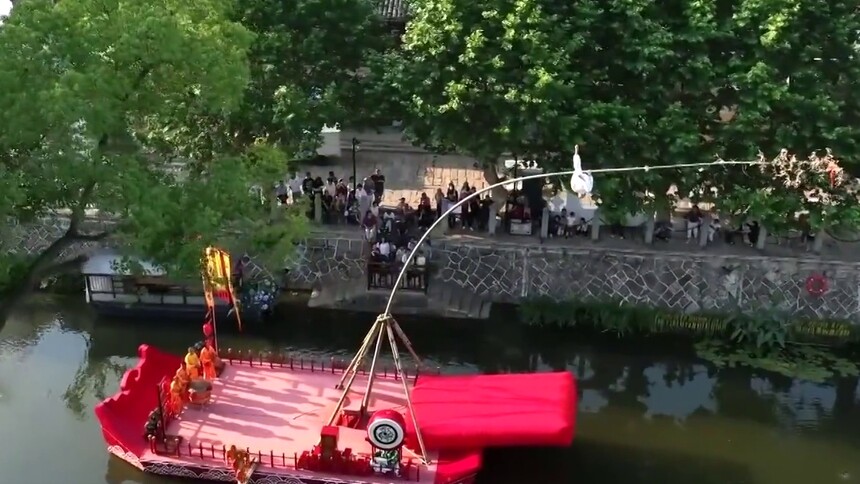 端午时节 文旅火热 浙江湖州:高杆船技演绎水上“真功夫”